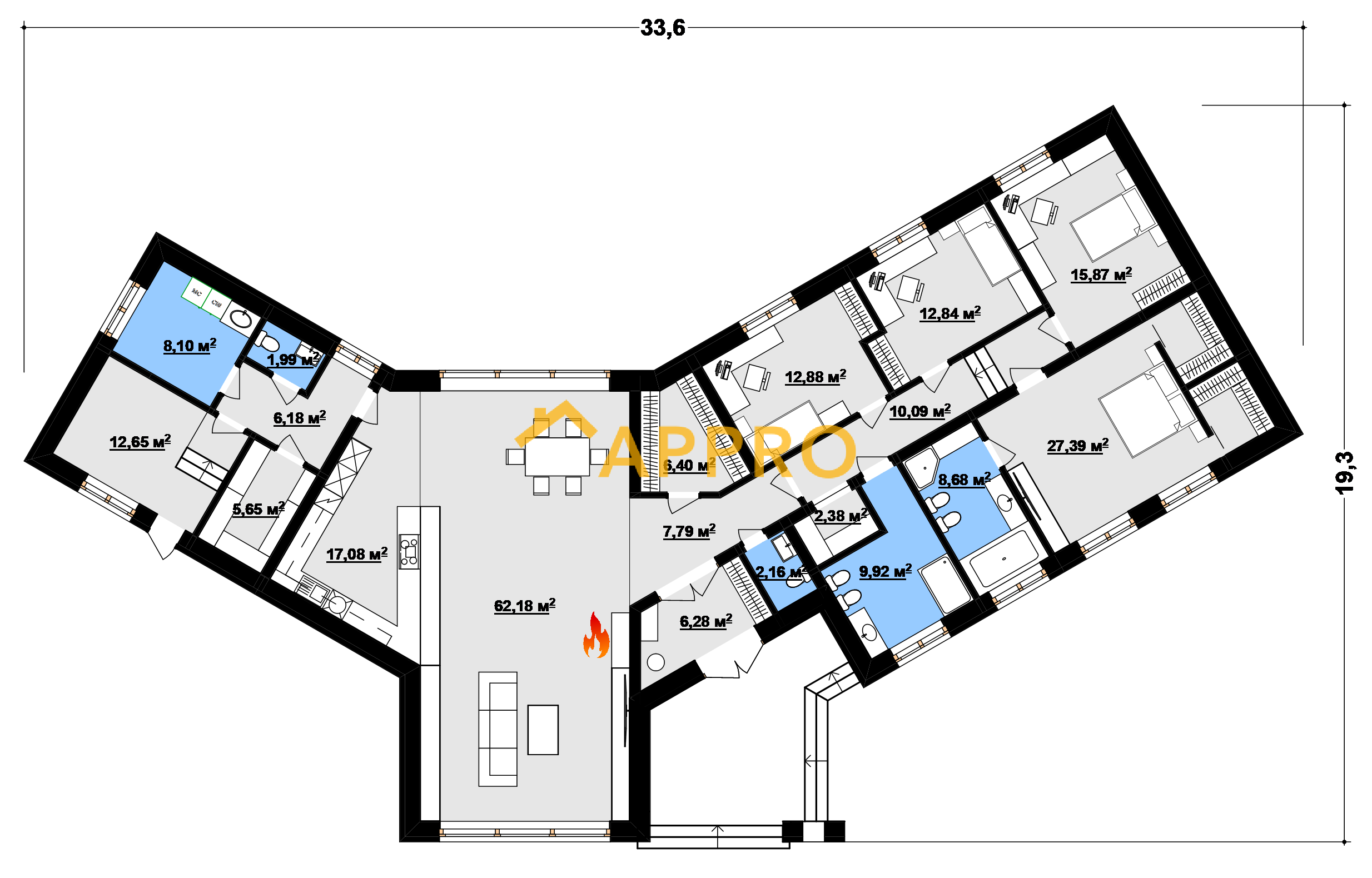 - габарити19.3 х 33.6 м
