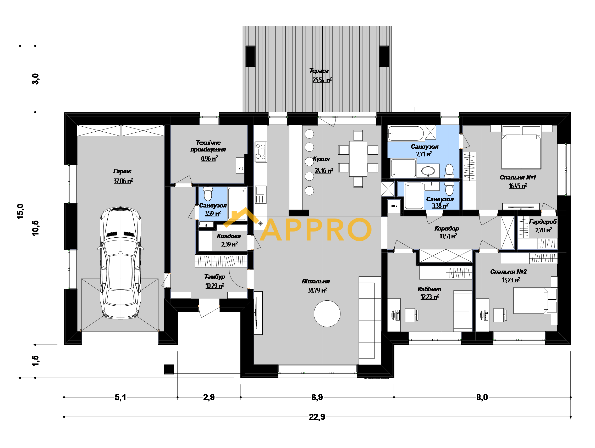 - габарити15 х 22.9 м