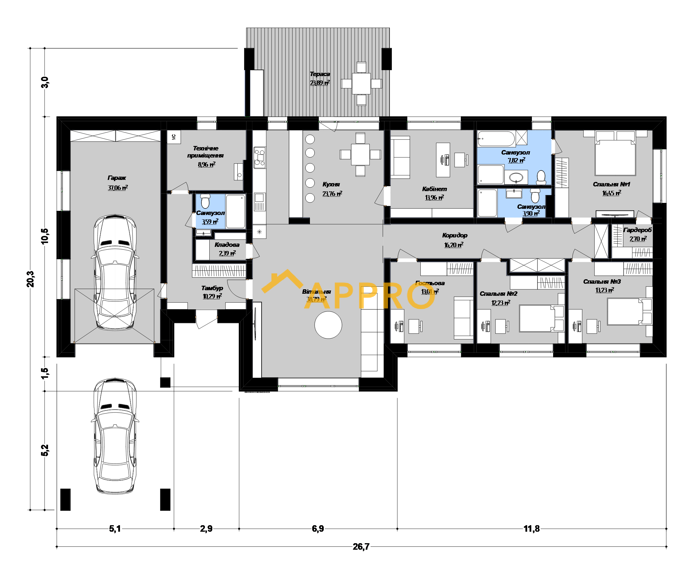 - площа тераси23.9 м2