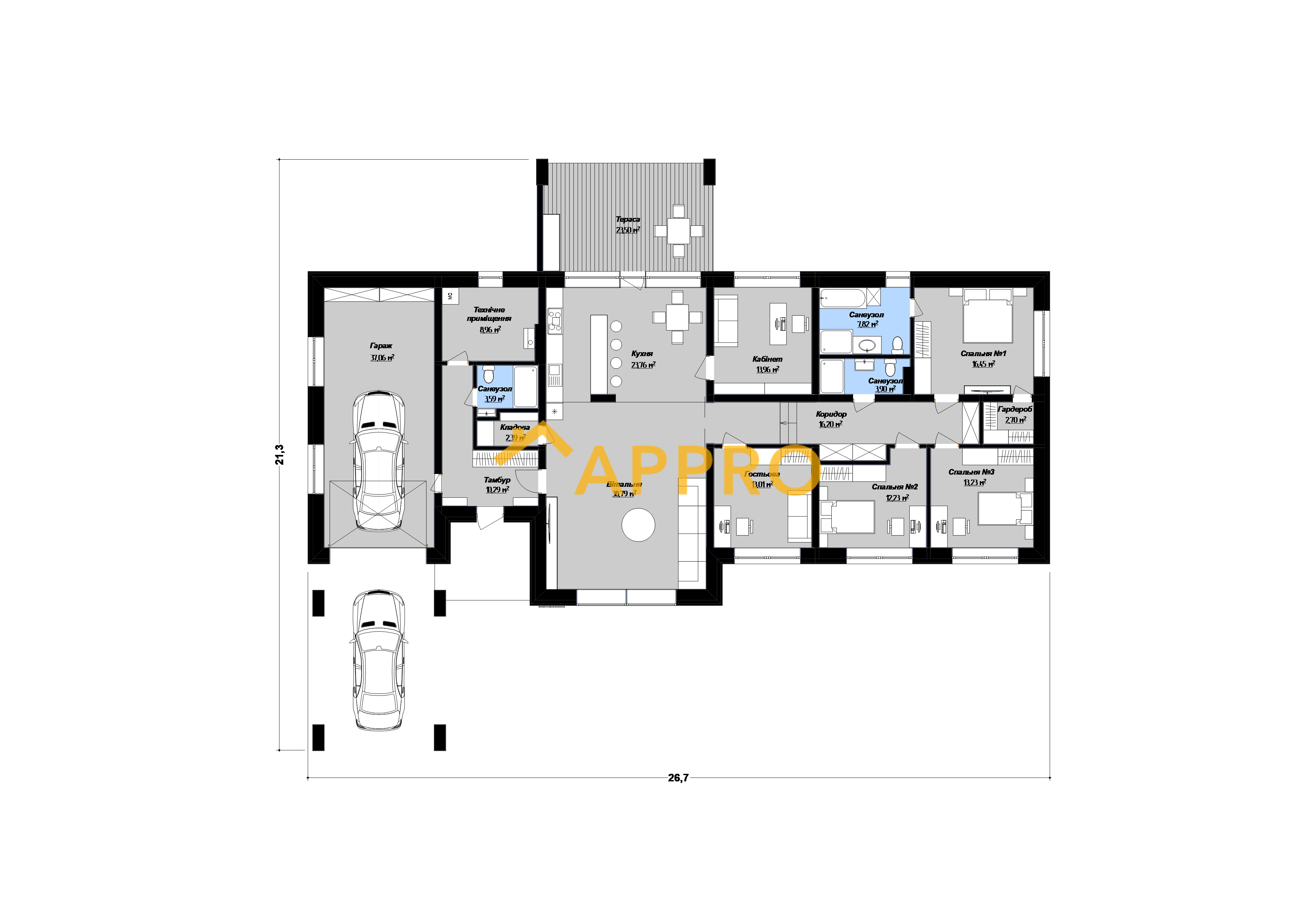 - габарити21.3 х 26.7 м
