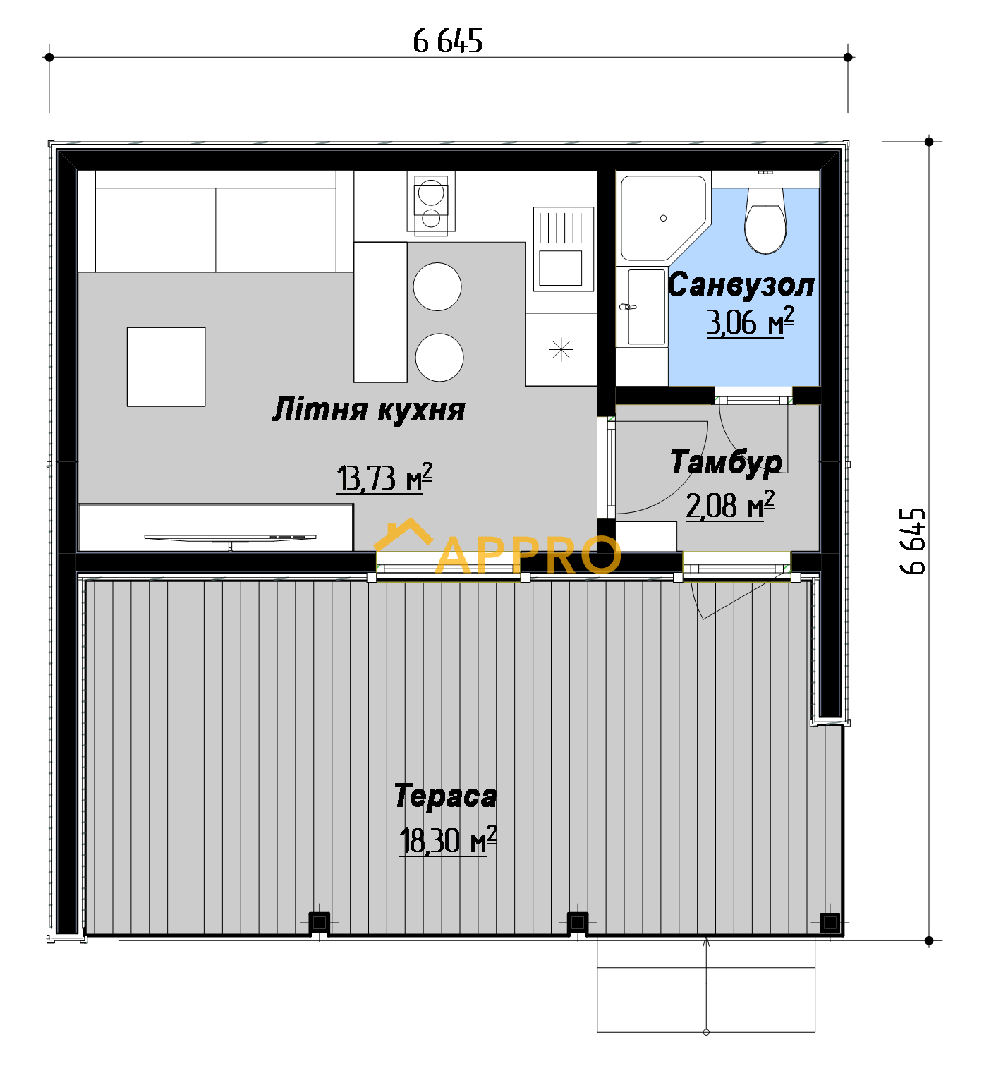 - площа тераси18.3 м2