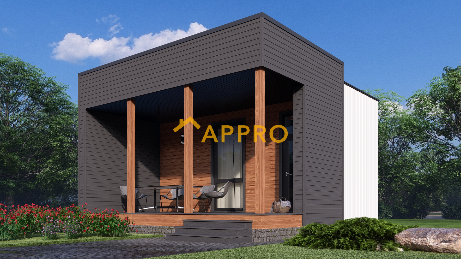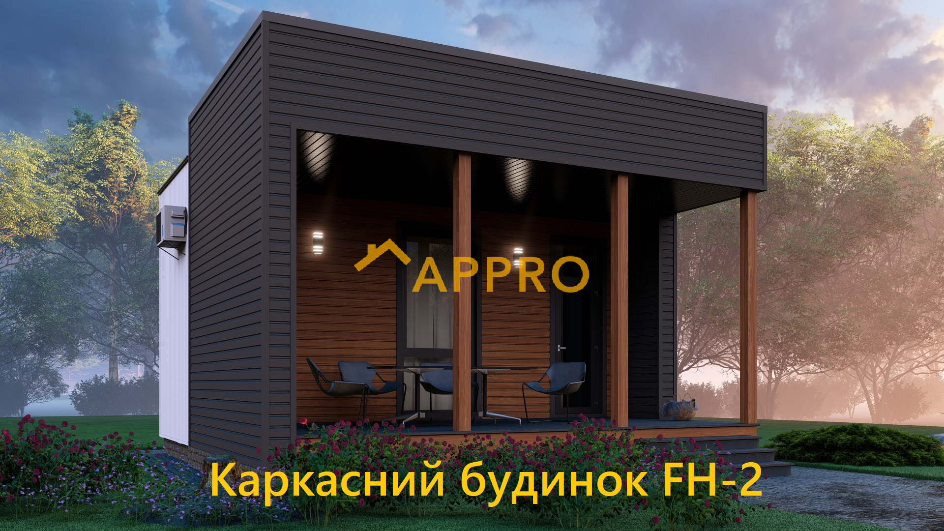 Каркасний будинок FN 2 - 25 виконаний повністю з дерева (без металевих сполучних елементів, що створюють місток холоду): 1. каркас стін - сушена калібрована дошка 145х45, OSB - 12мм, утеплений базальтовою ватою 150мм із зовнішнім оздобленням планкеном; 2. Підлога - брус 200х50, OSB – 22мм, утеплений базальтовою ватою 200мм; 3. Покрівля - брус 200х50, утеплений базальтовою ватою 200мм (додаткове утеплення 100мм у кошторисі не враховано). У проекті є складальні креслення основи будинку, каркасу стін, обрешітки під планкен, покрівлі та специфікації всіх елементів та деталей. Для експлуатації тераси в зимовий період є можливість встановити захисні ПВХ ролети або скління.