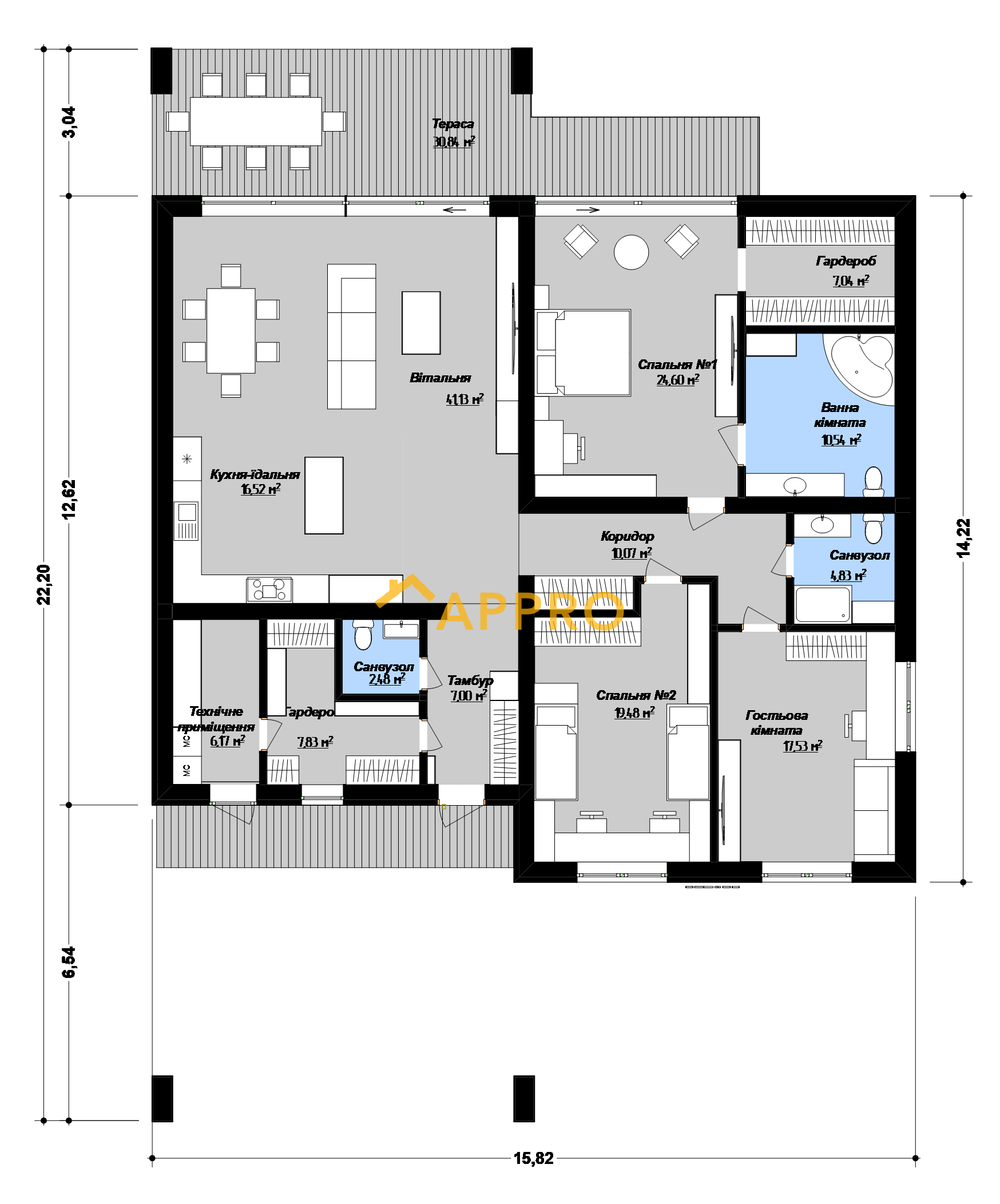 1А_185. Одноповерховий будинок. Будинок з троьма спальнями.